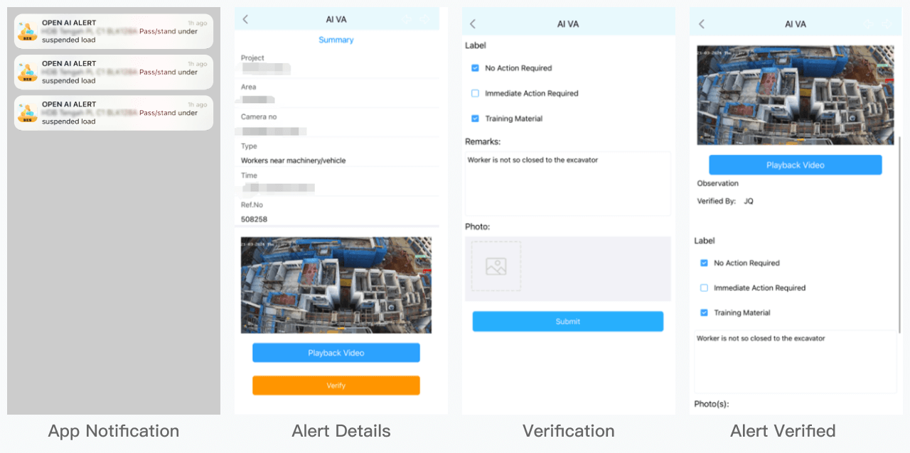 BES AI/VA leverages advanced AI-driven video analytics to enhance site safety. Integrated with existing CCTV systems, it detects safety violations instantaneously and delivers real-time alerts and actionable insights, ensuring safer and smarter construction environments.
